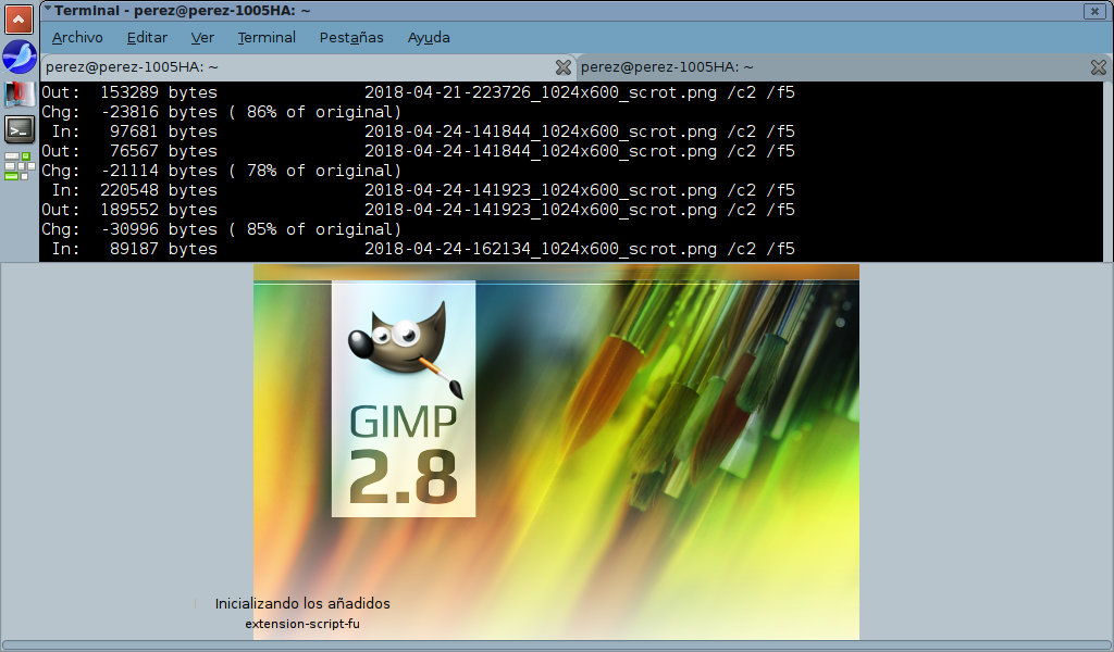 Las ventanas temporales —en este ejemplo, el diálogo de bienvenida de GIMP— ocupan la mitad inferior de la pantalla y se sitúan en primer plano.
