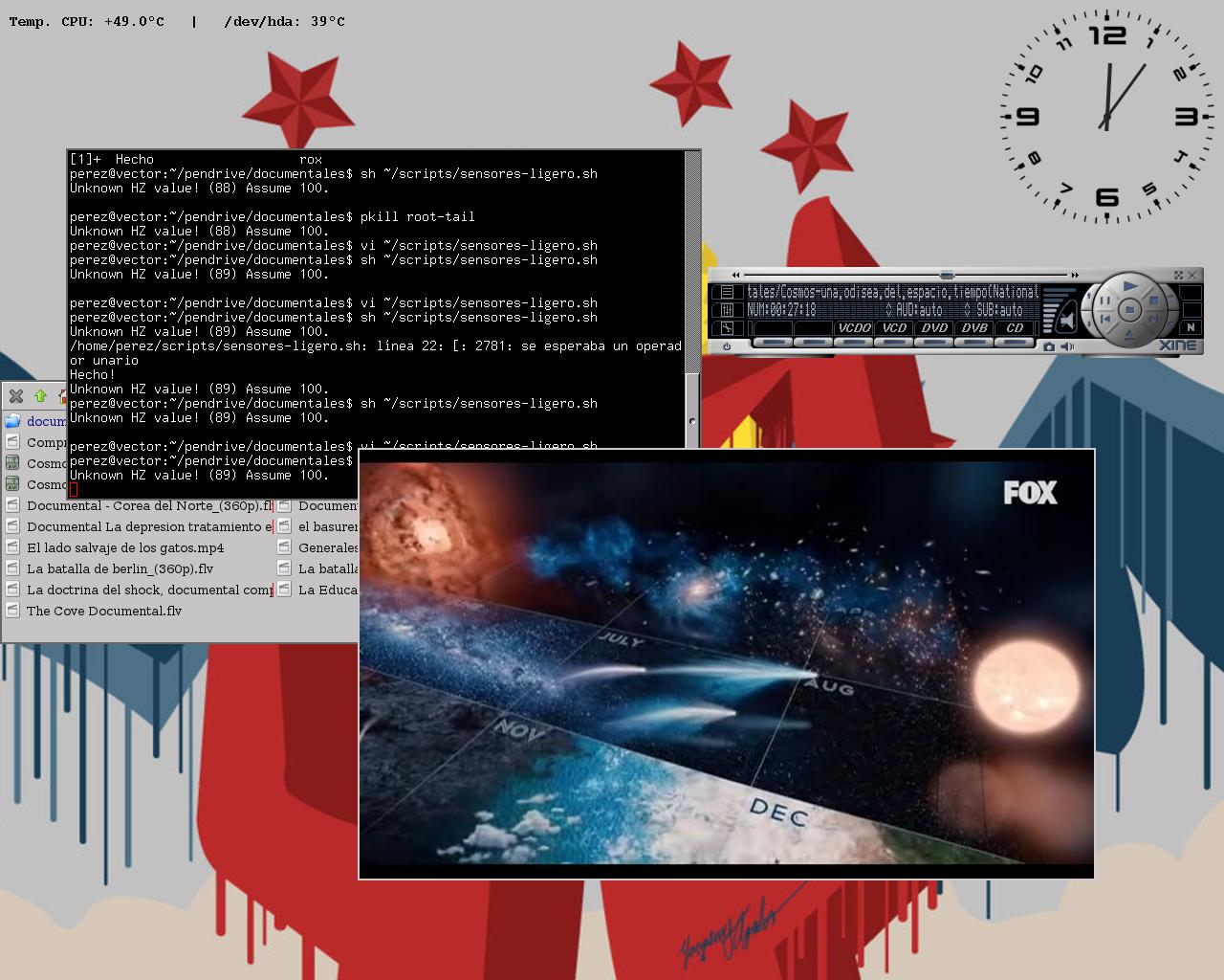 La nueva serie Cosmos, emitida en 2014, no me parece tan interesante como la original, la que presentó Carl Sagan en los años ochenta; aun así vale la pena verla. Arriba y a la izquierda, la temperatura del procesador y el disco duro, gracias a Root-tail