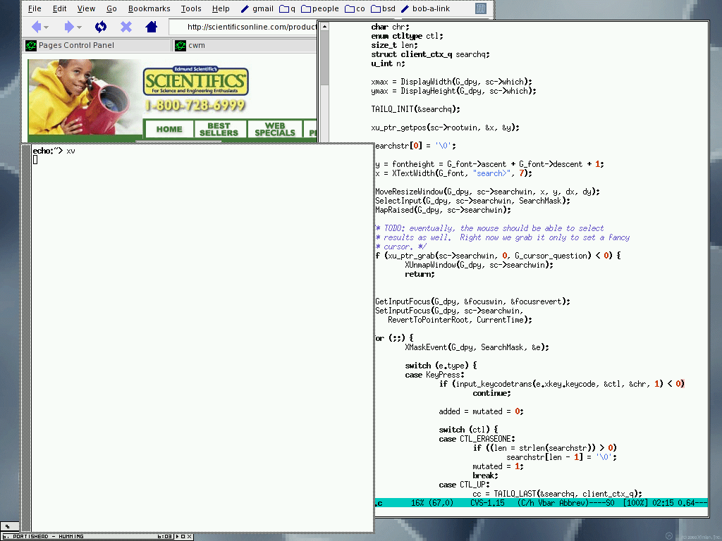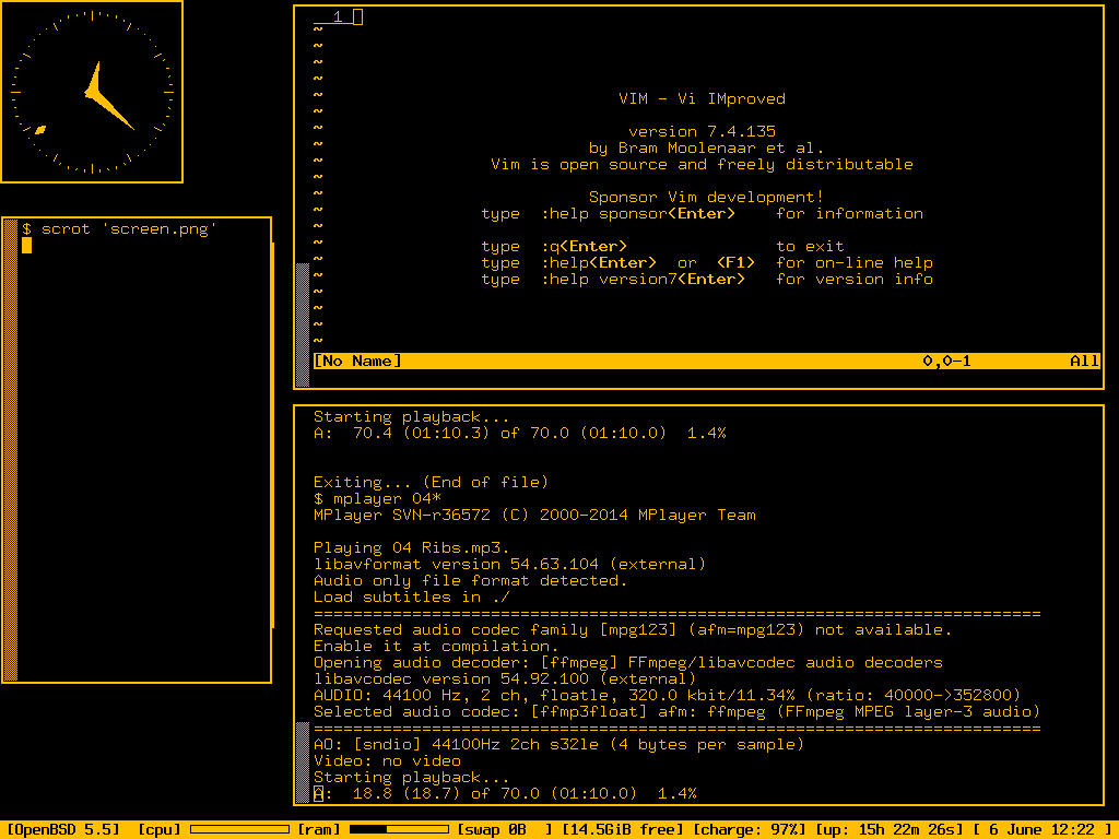Cwm es pequeño, y bajo su engañosa simplicidad se esconde una interfaz funcional y sofisticada. Y... Vale, no lo considero tan arisco como Ratpoison, pero sí requiere un mínimo de aprendizaje que no todo el mundo está dispuesto a acometer. No, Cwm no es un gestor para las masas; aunque, claro, el propio OpenBSD tampoco es un sistema operativo para las masas.