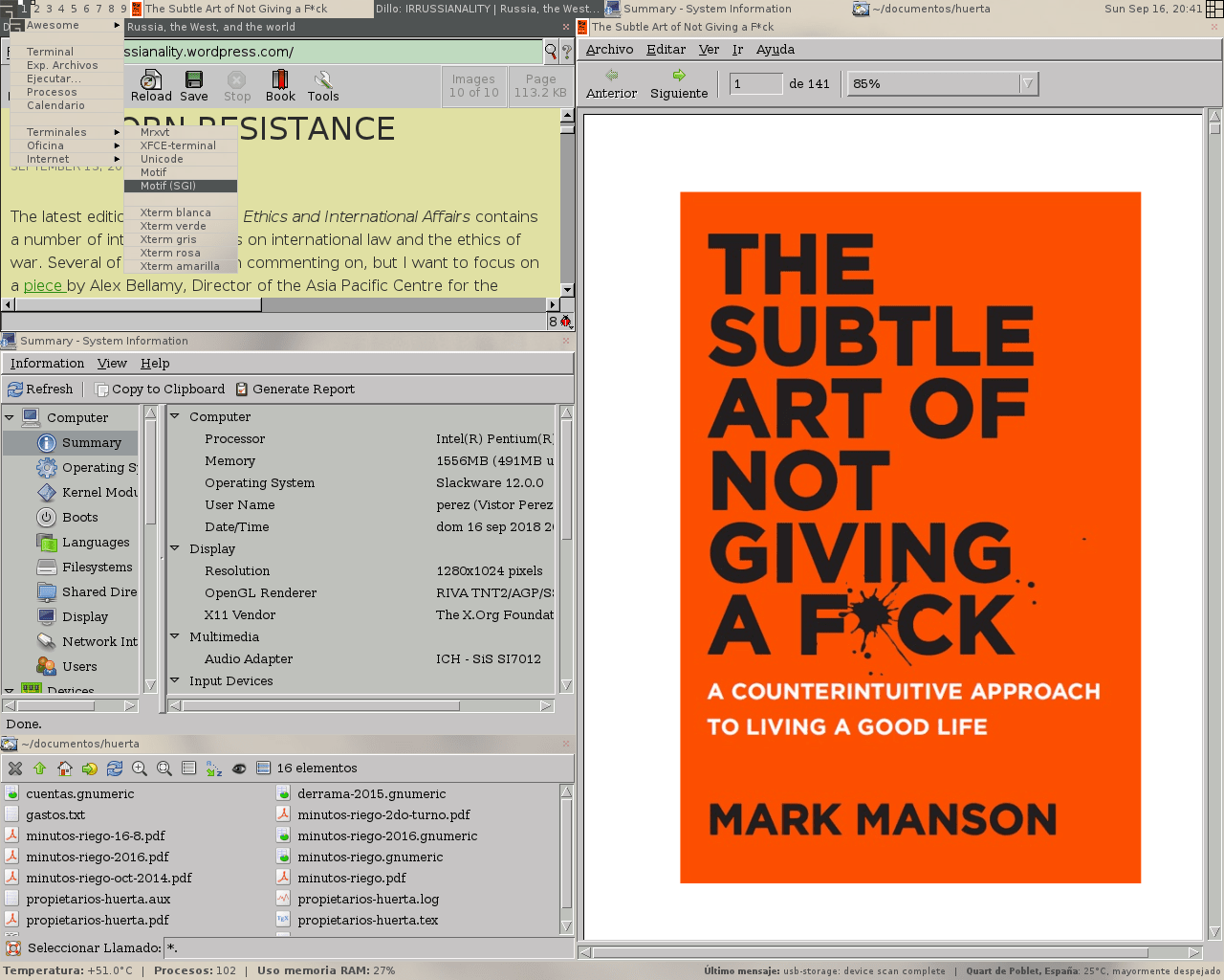 A estas alturas creo que los gestores de ventanas más populares —Window Maker, Openbox, etc— los he visto ya, así que me quedan mayormente rarezas y experimentos minoritarios. ¡Pero hay muchos por probar aún!