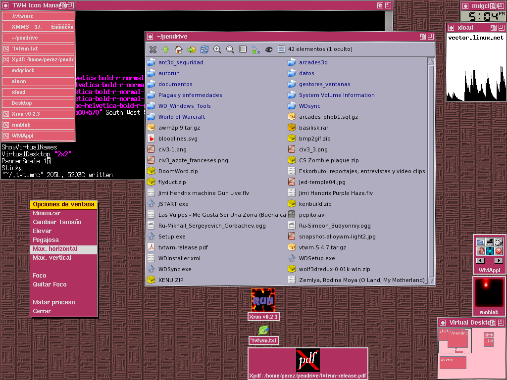 Como ya habréis adivinado, viene a ser lo mismo que emplear Twm, sólo que los iconos de las aplicaciones minimizadas se dibujan nítidamente y en color, y el usuario, por medio del escritorio virtual, cuenta con mucho más espacio para situar ventanas.