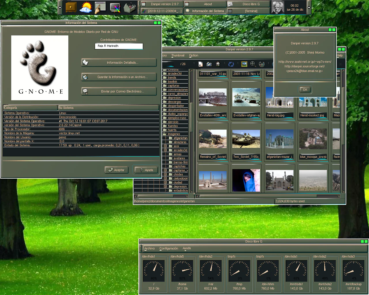 Gnome muestra información sobre mi sistema operativo. Al lado, el visor de imágenes Danpei |